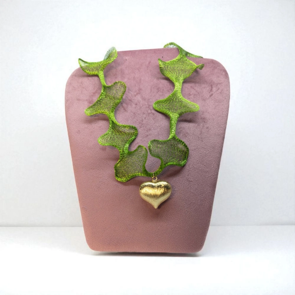 Al centro di questa splendida creazione, un pendente a forma di cuore, realizzato in ottone di alta qualità e placcato in oro 18 carati. Un simbolo di amore e passione, la cui finitura lucida e preziosa crea un contrasto affascinante con la texture leggera e sofisticata della filigrana di titanio. Non solo eleganza, ma anche praticità: il titanio, anallergico e incredibilmente resistente, assicura che questo gioiello ti accompagni a lungo nel tempo, mantenendo intatta la sua bellezza.